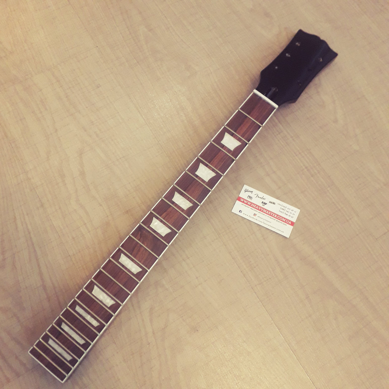 Фабрика ОЕМ, китай. У наявності. Новий. Для майстрів. Дерево висушене. Виріз голови грифа приклеєний до оригіналу. Ширина максимальна голови 76 мм. анкер від отвору на 25 мм. Діаметр отворів 8 мм. Порожок 43 мм. Ширина ладів 2,7 мм. Висота ладів 1,3 мм. 22 лади. Гриф суцільний.