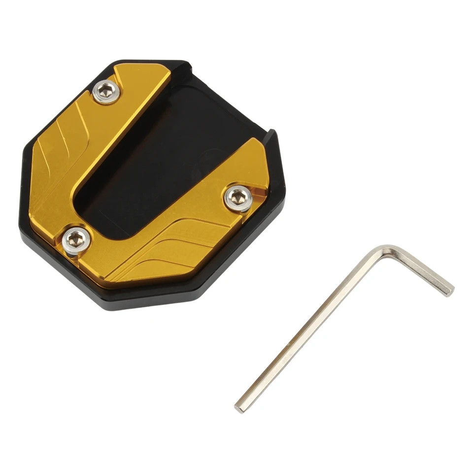 Підставка для лапки стоянкового тормазу мотоцикла золотиста. Підвищує та збільшує площу стоянкового гальма.